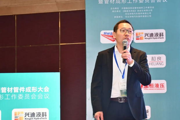 河北华特汽车部件有限公司技术总监赵宏义作《汽车管材管件精密加工技术创新与产业化落地实践》报告。