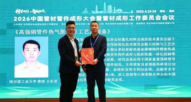 2026年4月22日-24日,中国锻压协会主办,《锻造与冲压》杂志社有限公司、河北华特汽车部件有限公司承办的“2026中国管材管件成形大会暨管材成形工作委员会会议”在河北省衡水市衡水泰华博悦大酒店圆满落幕!120余名来自行业协会领导、高校科研院所专家与企业精英,聚焦管材成形技术创新、产业化应用、行业标准等核心议题,共话行业未来、共促技术升级。