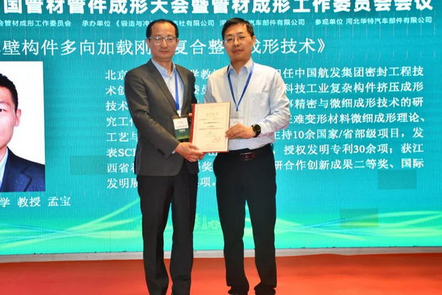 哈尔滨工业大学教授王东君作《高强钢管件热气胀成形工艺及装备》报告。