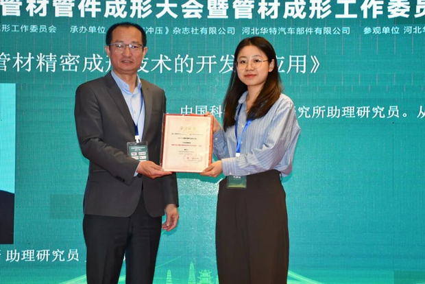 中国科学院金属研究所助理研究员史海薇作《颗粒辅助管材精密成形技术的开发与应用》报告。