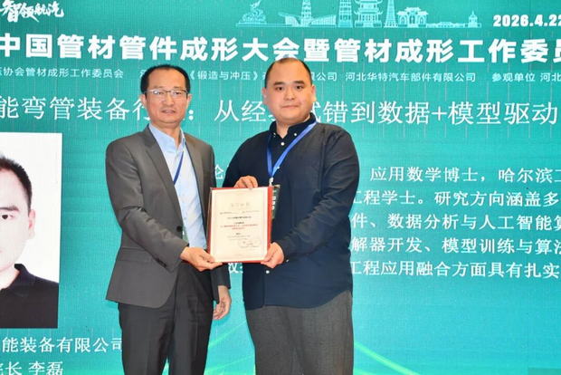 浙江长兴和良智能装备有限公司企业研究院院长李磊作《AI赋能弯管装备行业:从经验试错到数据+模型驱动闭环》报告。