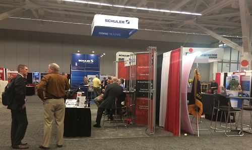 3、 本次参展的美国、德国展商最多,半数德国展商有美国的分公司或者本地代理,中国和韩国的展商合起来大约有接近20家,韩国压力机的制造商HBE、Hosung、JH宣传的力度很大,在国际一流杂志上也做了很多广告,做锻造自动化的Agang和Dong San原来的基本业务在亚洲,现在也在积极开拓北美市场。最近几年,笔者接触了很多韩国厂商,营销的力度很大,销售人员干劲十足,在中国的新增投资中拿到了一些项目,是中国厂商强有力的竞争对手。日本展商较少,中国有天锻、安阳锻压、重庆沃克斯、瑞安锻压等十几家展商参展,其中锻件企业有7-8家。