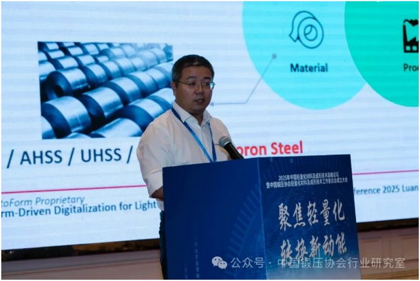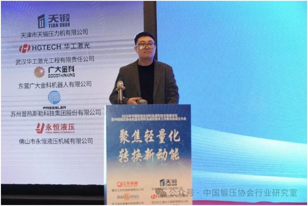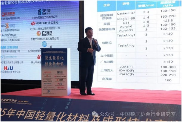 通用技术天津市天锻压力机有限公司设计院研发所所长刘辉做《汽车轻量化整体解决方案》大会主题报告。