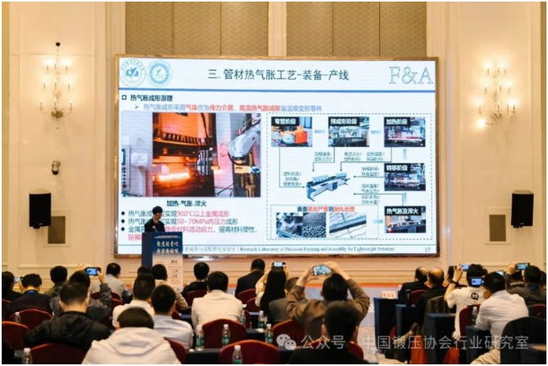 航宇制造(北京)工程技术有限公司/北京航空航天大学刘鑫做《管材热气胀成形生态圈构建—创新测试、工艺、软件、装备及产线》大会主题报告。