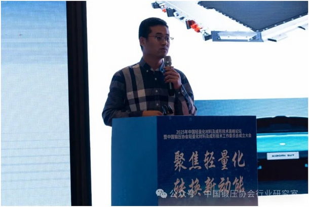 电子科技大学(深圳)胡鑫宇做《智能辊压与热辊压新工艺在新能源汽车结构领域应用》大会主题报告。