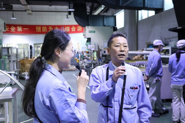 明思作机电(无锡)有限公司藤森康史总经理(右)介绍公司情况